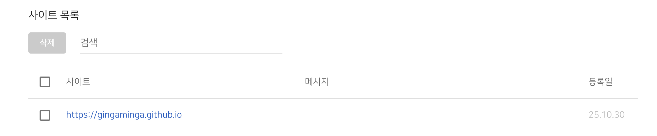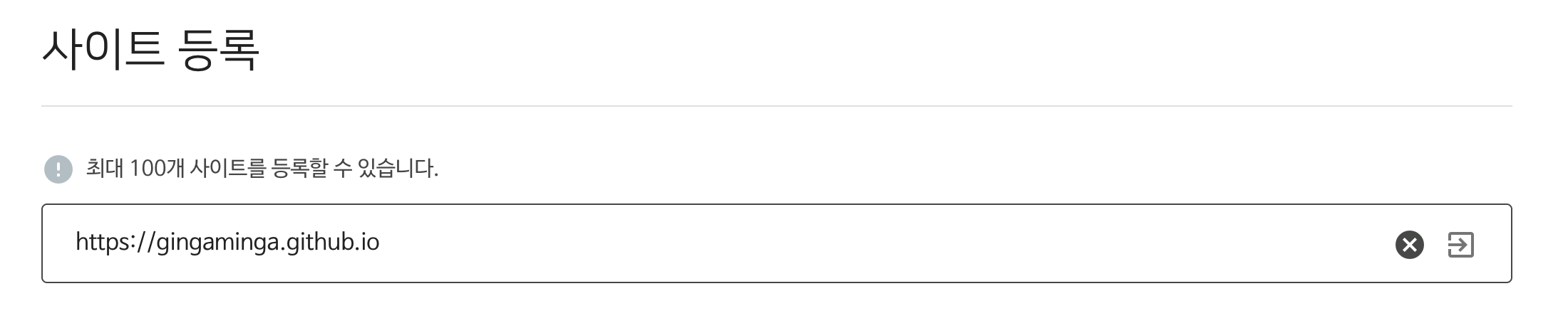 사이트 등록 란이 있는데, 여기에 내 블로그 주소를 적고 버튼을 누른다.